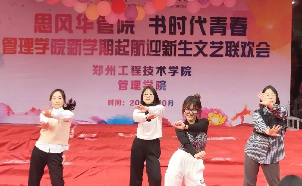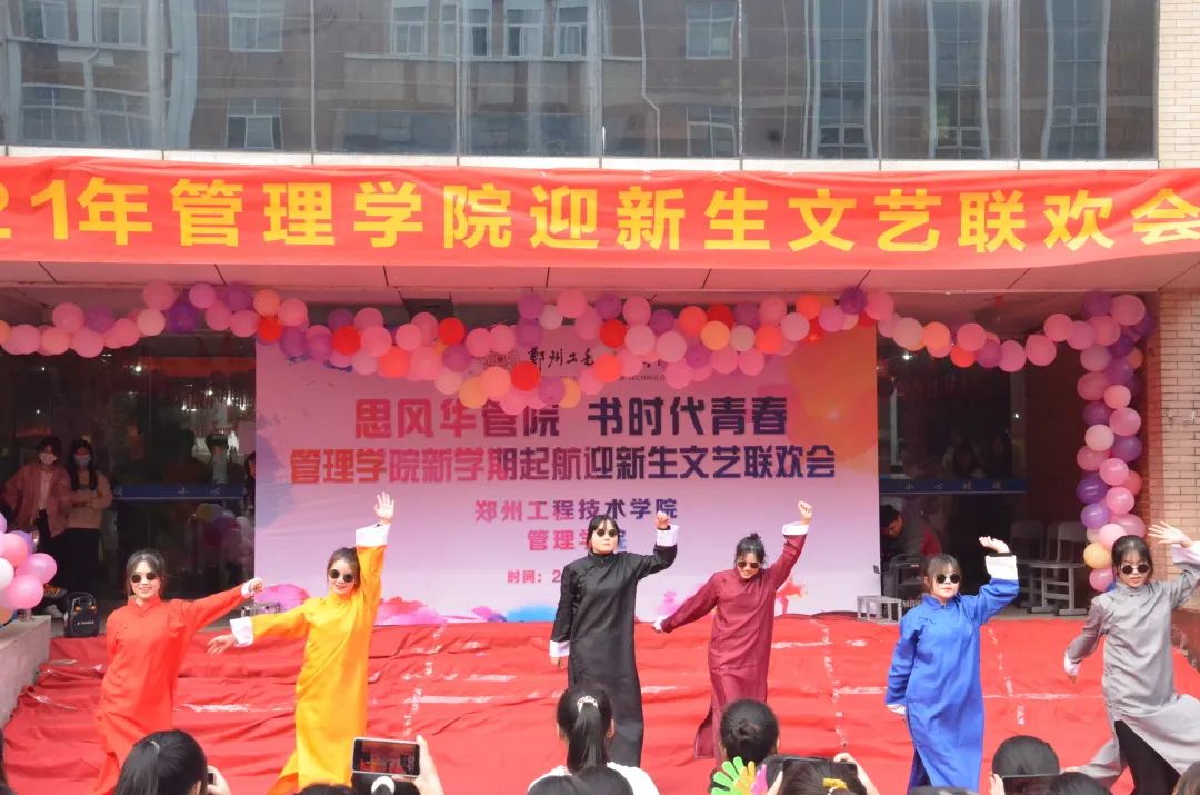 相聚2021,相聚郑工。为迎接2021级新生的到来,展现管院学子风采,以"思风华管院,书青春时代"为主题的迎新文艺联欢会于10月27日下午两点,在英才校区博识楼前隆重举行。此次联欢会旨在进一步推进公司文艺活动的蓬勃发展,活跃学习氛围,以文化活动的形式让同学们更快的融入大学新生活,同时给同学们一个真正展示自我风采、释放才艺的舞台。球王会老师与全体新生共同参加此次活动,师生共聚一堂,共度欢乐时光。