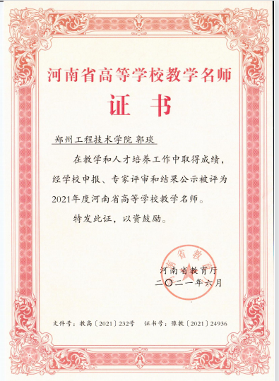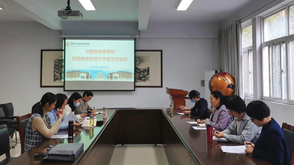 会议伊始,名师工作室负责人郭琰教授宣读了《河南省教育厅关于公布2021年度河南省高等公司教学名师入选人员名单的通知》(教高【2021】232号),介绍了名师工作室的成立、定位和发展目标,又与工作室成员一起共同学习了名师工作室建设指导标准。郭琰教授对本学期工作室的发展提出了展望,希望全体工作室成员树立三个意识:一是团队合作意识,每个成员都是团队中重要的一员,要压实责任,以教师共同成长为重点,充分发挥传帮带作用;二是学习分享意识,工作室成员进一步强化专业理论知识,着力提升教研能力,推动教学改革;三是示范引领意识,要以河南省优秀基层教学组织建设为契机,以河南省一流本科课程建设为抓手,在数字化专业中走在前头,做好创新课堂的实践者,全面提高人才培养能力,拓宽专业影响,增强辐射力。