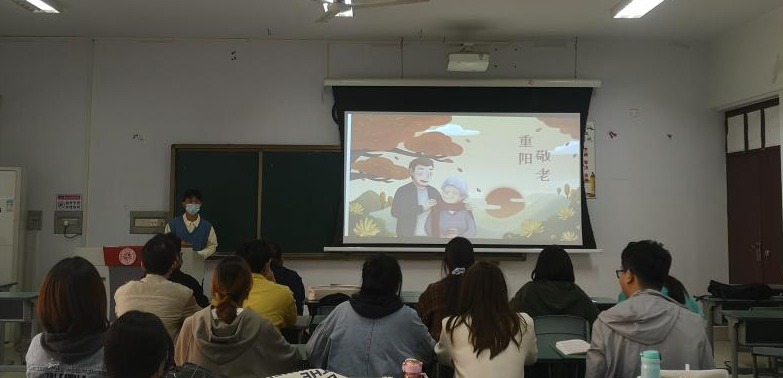 首先,由分团委的同学讲解了重阳节的由来以及传统习俗。随后,同学们以诗词诵读形式表达了对传统文化的尊重。
