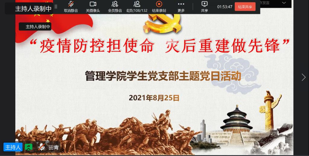 8月25日下午,球王会员工党支部开展线上“疫情防控担使命 灾后重建做先锋”主题党日活动,球王会员工支部100多名教工和员工党员参加了本次主题党日活动,主题党日活动由员工支部组织委员田青主持。