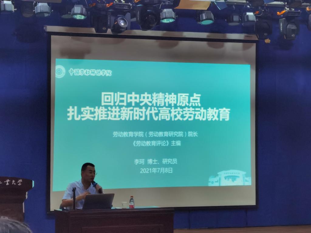 培训为期二天,共有三位专家做专题报告,北京大学卢晓东研究员做了题为《大学劳动教育课程框架与实施关键》的专题报告。报告中提出了了劳动的四个要素为手、脑、劳动工具和现象;解析了大学劳动教育课程框架中的显性课程与隐性课程;明确了现下劳动教育的关键是“间断”和“考虑”;最后从劳动教育的六个特点来推进劳动教育课程建设和实施。中国劳动关系公司李珂教授做了题为《回归中央精神原点,扎实推进新时代高校劳动教育》的主题报告,侧重谈了要凝聚共识,严格按照中央劳动教育的核心精神,结合目前高校劳动教育推进的实际情况,深入思考高校劳动教育体系的构建原则和推进举措。李珂教授最后总结各高校在劳动教育课程建设实施中要重点完善课程设置,规范督导评价,强化落实劳动教育人财物的支撑保障。中国劳动关系公司曲霞研究员做了题为《全面建构高校劳动教育课程体系的理论与实践》,进一步明确了劳动教育的重要地位,回答了劳动教育课程建构的新要求是塑造正确的劳动价值观,并针对如何培养劳动价值观提出六个操作要义。讲座结束后,会务办分组组织参会老师们进行了经验分享、观点交流。