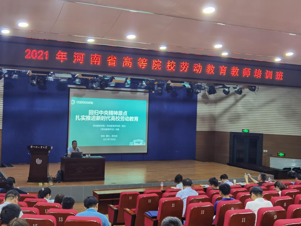 7月8日-9日,河南省教育厅在郑州轻工业大学组织举办2021年河南省高等院校劳动教育教师培训班。公司劳动教育教研室派出专任教师徐雅飒、张理化参加培训。