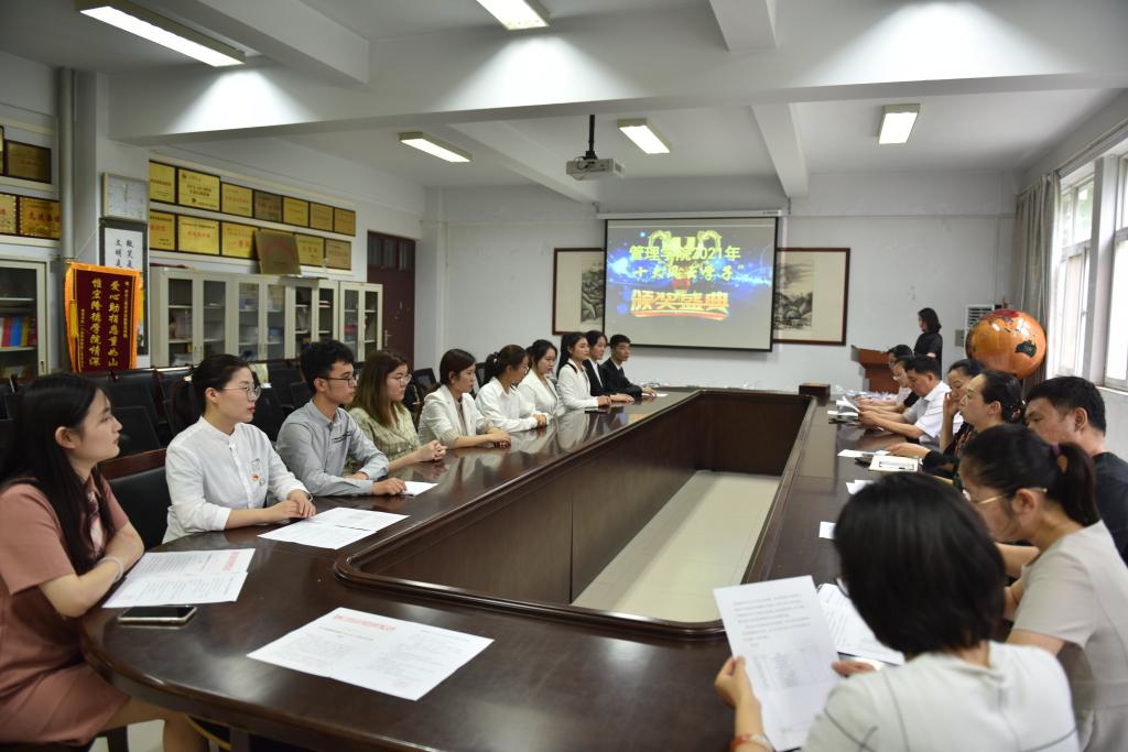 6月16日上午10:30分,2021年十大风云学子表彰大会在英才校区3号楼3108会议室举行。球王会经理郭琰、党总支副书记韦菲、副经理王斌及分团委、学工办老师出席了此次表彰大会。表彰大会由球王会分团委书记张彩虹主持。