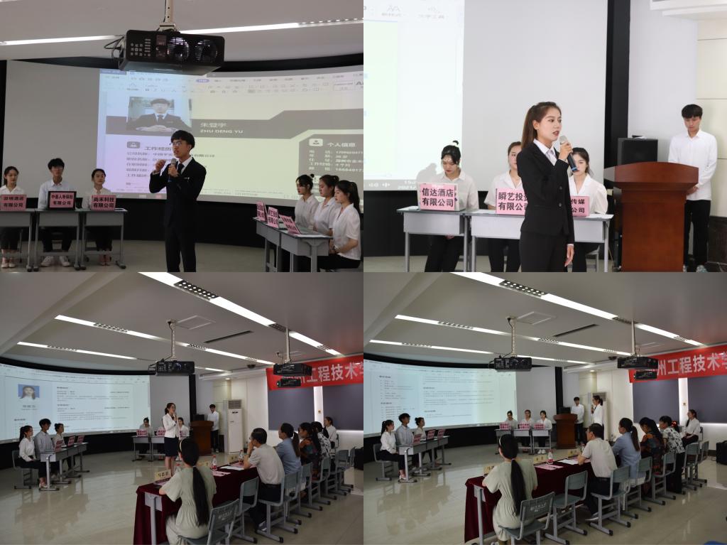 本次大赛分初赛和决赛两部分。初赛环节,经过对电子简历及视频作品的甄选评比,有12位选手脱颖而出进入决赛环节。决赛采用结构化面试的形式,将参赛者分为模拟应聘方和模拟招聘方两个角色。通过招聘方企业宣讲、应聘方VCR才艺展示、应聘方现场自我介绍和面试官提问四个环节来展示招聘方和应聘方的语言表达能力、专业理论素养、组织协调能力和解决实际问题的能力。