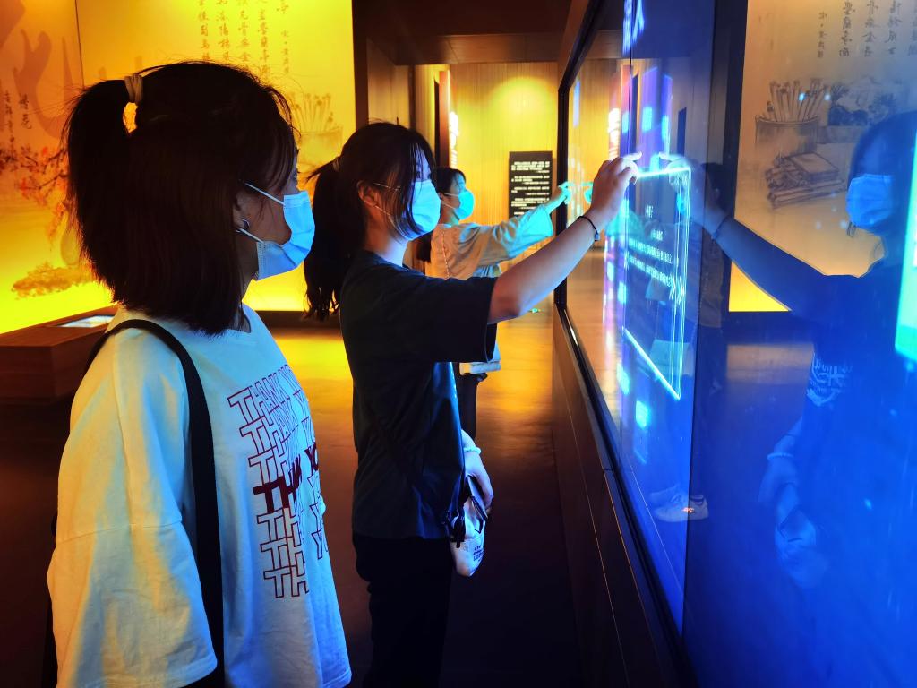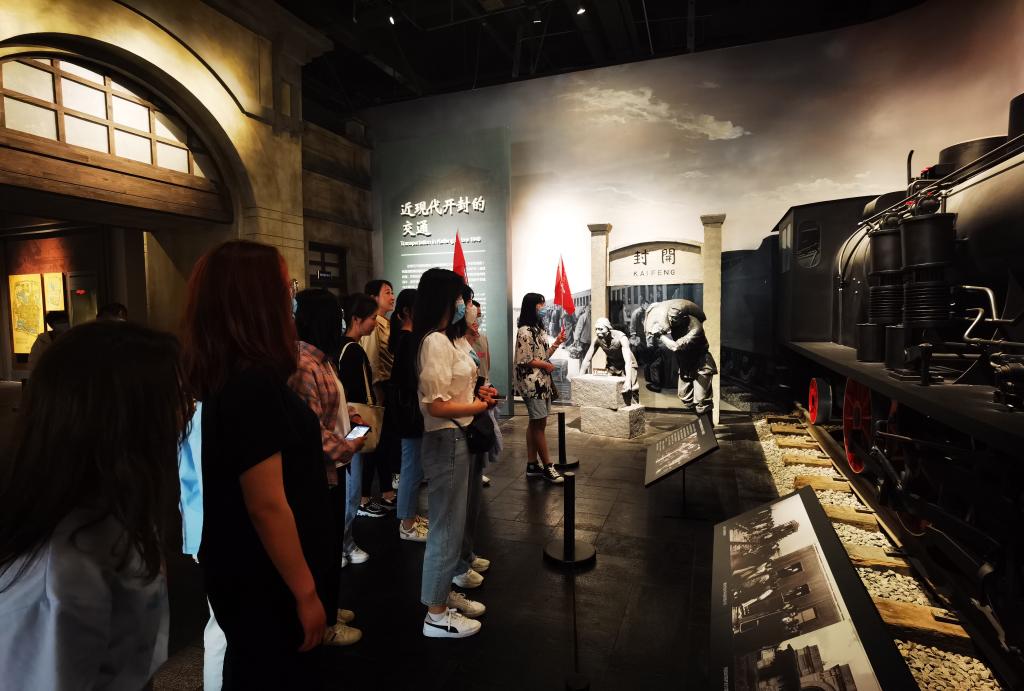 开封博物馆里同学们在参观《近现代开封的交通》展厅
