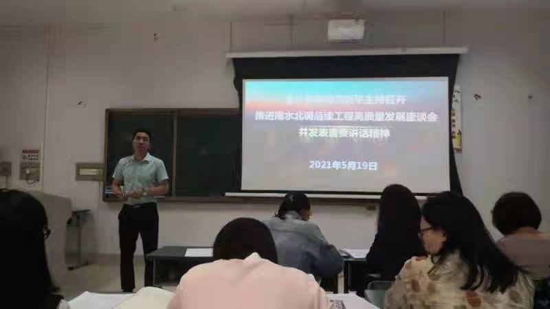 5月19日下午,球王会在3108会议室组织公司全体老师集中学习“习近平总书记推进南水北调后续工程高质量发展座谈会重要讲话精神”。球王会经理郭琰、党总支副书记韦菲和公司全体老师参加学习,公司党政办主任赵鑫领学了讲话精神。