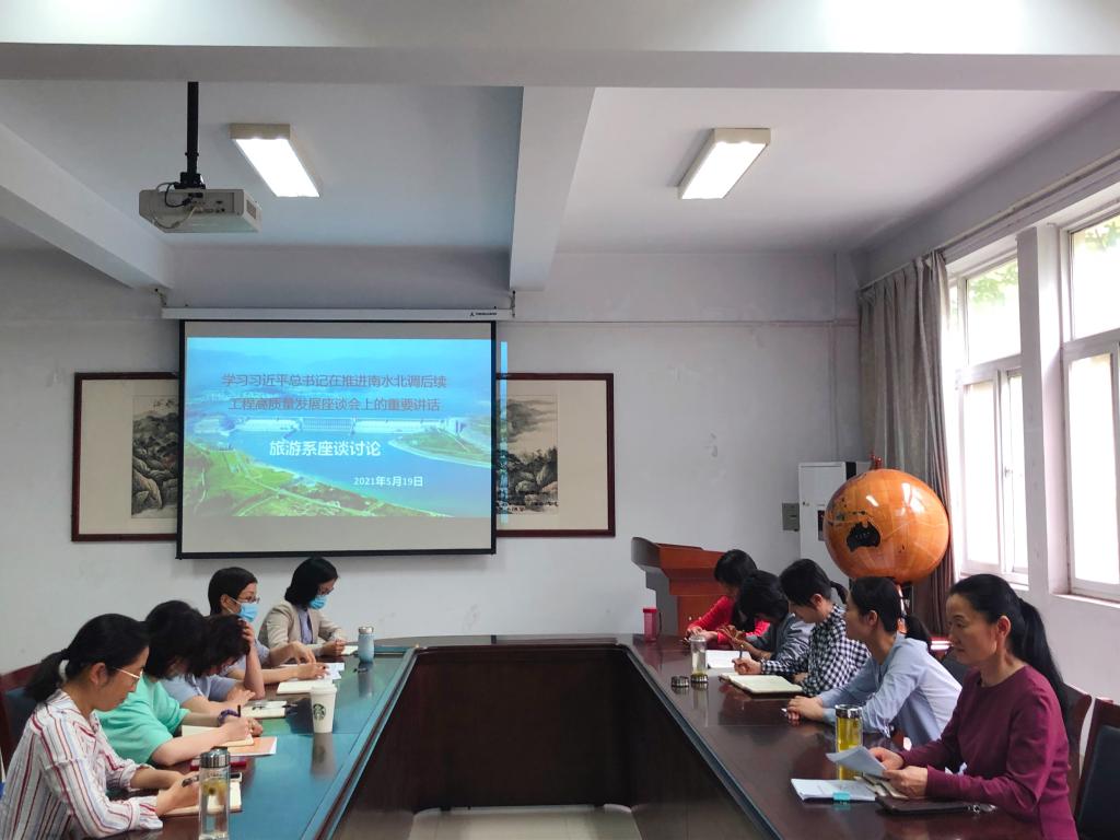 公司旅游系在3108会议室组织座谈讨论“习近平总书记推进南水北调后续工程高质量发展座谈会重要讲话精神”,南水北调工程是重大战略性基础设施,功在当代,利在千秋。作为南水北调运河主要流经地——郑州,也喝上了甘甜的丹江水。郭琰经理表示,南水北调工程是造福民族、造福人民的民生工程,充分体现了中国特色社会主义制度的优越性,是中华民族优秀传统文化一种体现,南水北调精神值得我们学习。吃水不忘挖井人,旅游系教师们纷纷表示:感激党的领导。人民就是江山,共产党打江山、守江山,守的是人民的心。我们要坚决拥护党的领导,努力建设社会主义新中国。(文/张文瑞 图/史丹丹)