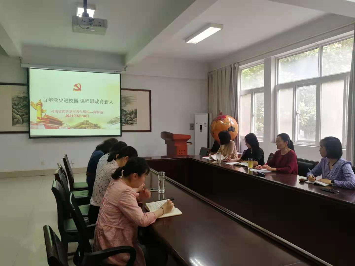为进一步深化党史学习教育,深入学习贯彻习近平总书记在党史学习教育动员大会上的重要讲话精神,以党建促业务,提升河南省优秀基层教学组织的引领、示范作用,5月10日下午,旅游系党支部在3108会议室组织开展“百年党史教育,课程思政研讨”研讨活动,支部全体成员参加研讨活动并展开深入交流。
