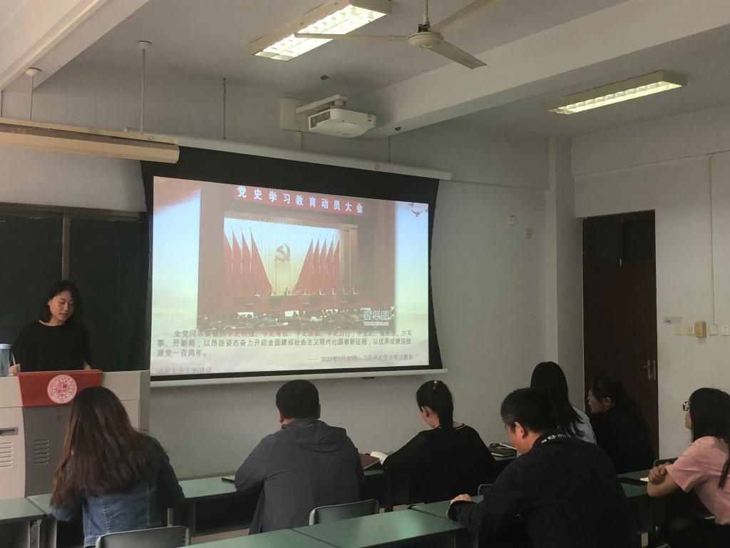 党课中,张老师以习近平总书记在党史学习教育动员大会上的讲话为引,要求各位党员要做到学史明理、学史增信、学史崇德、学史力行,学党史、悟思想、办实事、开新局,以昂扬姿态奋力开启全面建设社会主义现代化国家新征程,以优异成绩迎接建党一百周年。随后,她又分别以:开天辟地:起点与初心;改天换地:奋斗与牺牲;翻天覆地:建设与改革;惊天动地:强国与复兴等四个部分介绍了中国共产党从无到有,发展壮大的百年历程。最后,张老师点出中国共产党从成立之日起,既是中国先进文化的积极引领者和践行者,又是中华优秀传统文化的忠实传承者和弘扬者。