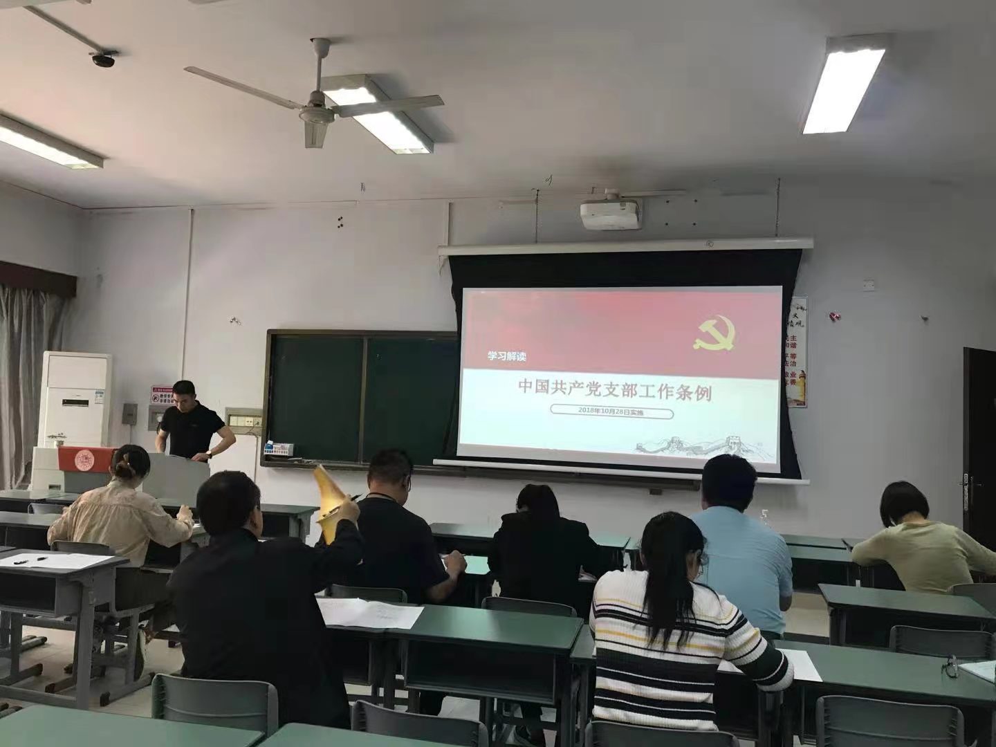制定和实施《条例》,是推动全面从严治党向基层延伸的重要举措,为新时代支部建设提供了基本遵循,对加强党的组织体系建设,具有十分重要的意义。通过学习和讨论,大家一致认同:“一个支部就是一个战斗堡垒”。党员老师们纷纷表示在实际工作中要进一步深入学习《条例》内容,争取做到深刻领会、积极贯彻、努力实践。(文/图 王建丽)
