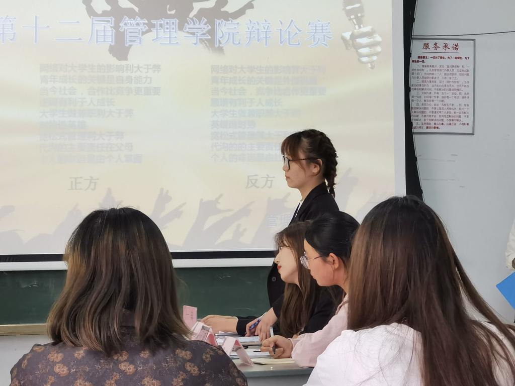 本届比赛共有来自各班级的90名员工参加。继正反方慷慨激昂、充满理性色彩的自我介绍后,比赛进入开篇立论环节。在近一个小时的角逐中,正方和反方选手运用扎实的专业知识,凭借厚实的文化功底,一针见血提出反驳观点。辩论场面激烈,双方都不甘示弱。整场比赛高潮迭起,精彩不断,观众也积极参与,和选手们互动,现场气氛十分活跃。其中2019级旅游管理三班的孙彤浩同学用通俗幽默的快板式语言陈述己方老员工兼职利大于弊的问题的观点。2020级财务管理二班的马瑾同学更是能准确的抓住对方的弱点,一针见血的进行辩论。在随后的攻辩环节中正反双方更是争锋相对、步步紧逼,现场气氛迅速升温,达到白热化阶段。大赛继续进行,进入自由攻辩环节。辩手们精辟的措辞,犀利的言辞,展现出咄咄逼人的气势。继短暂而精彩的自由攻辩环节后,比赛进入总结陈词环节。正反方辩手清晰的思路和巧妙的陈词给评委和观众留下了深刻的印象。13:30本次辩论赛圆满结束。