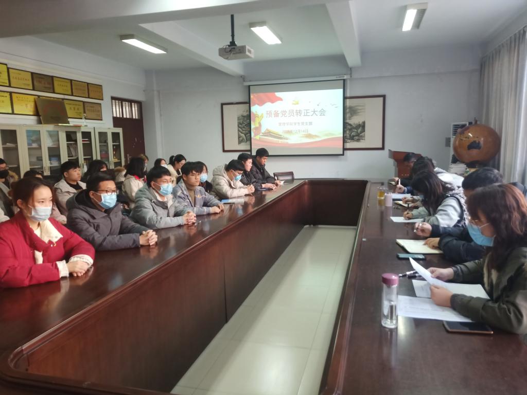 12月14日下午,球王会员工党支部在3号楼3108会议室召开预备党员转正大会。球王会员工支部书记张彩虹、副书记王剑以及员工党支部全体党员老师、员工党员和员工预备党员参加。转正大会有员工支部组织委员田青主持。