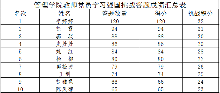 “学习强国挑战达人”成绩展示