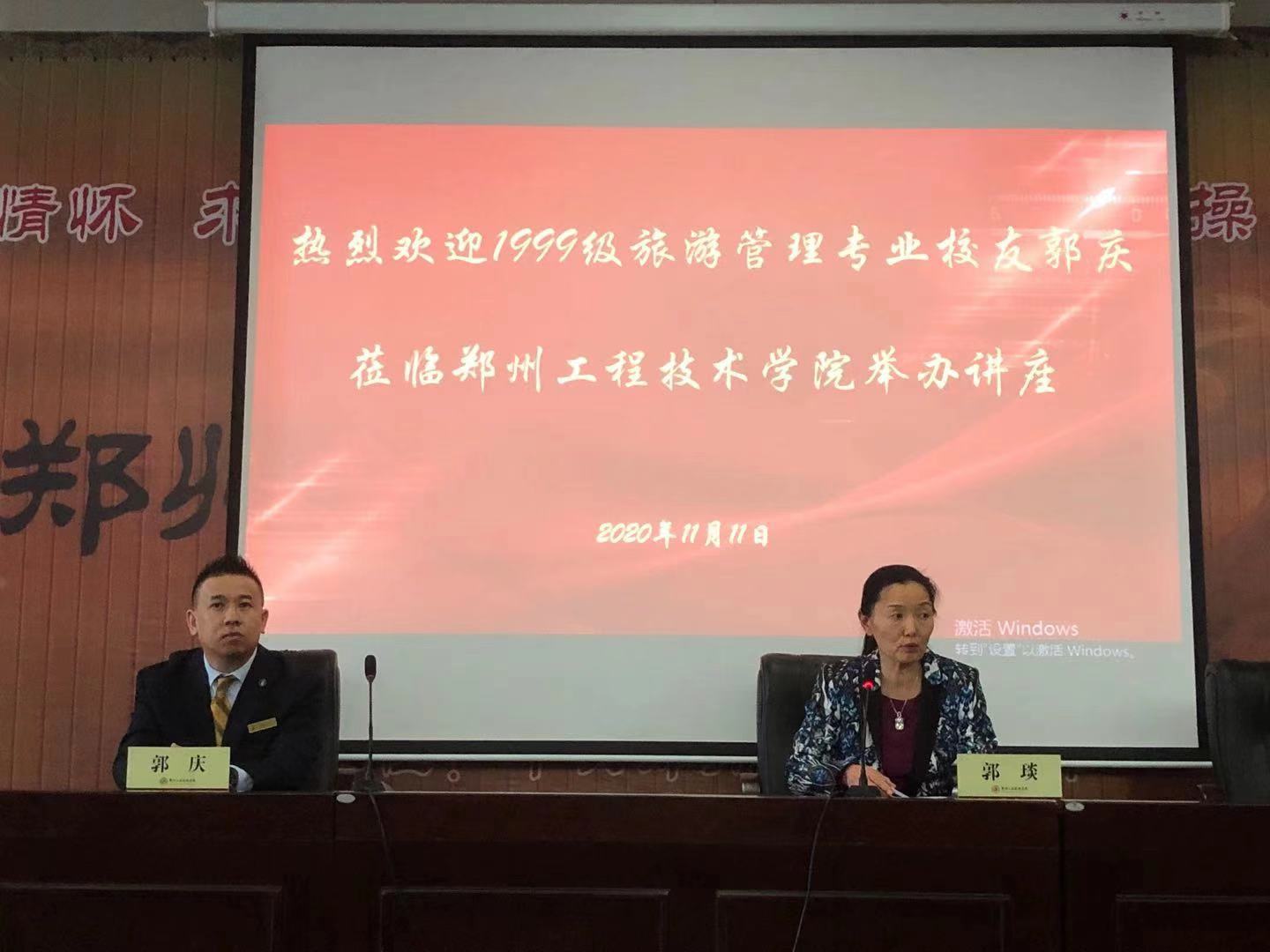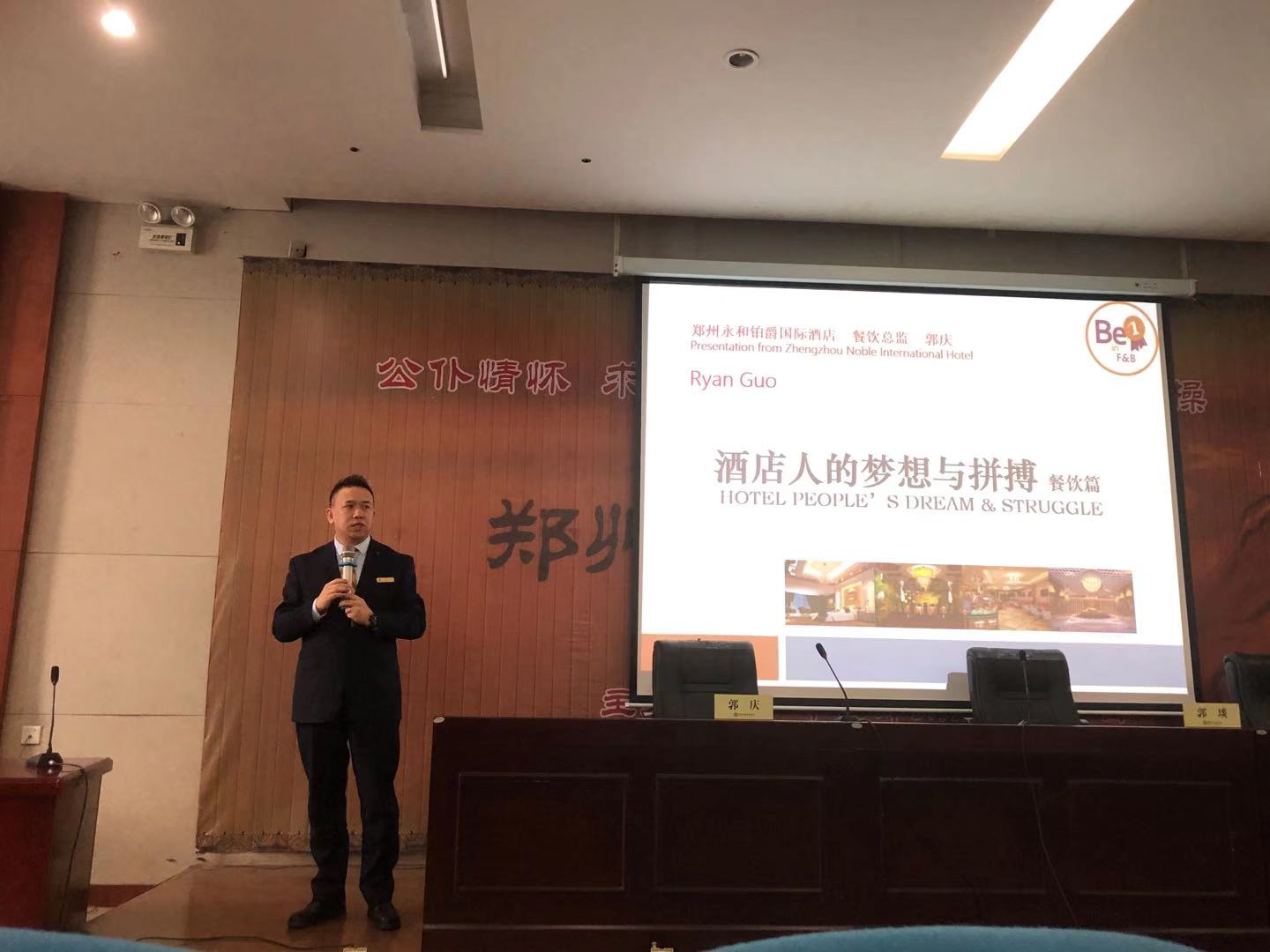 为加强校企合作与交流,传递酒店前沿发展信息,培养师生对酒店管理专业的认同感,增强员工今后从业的信心、树立正确的择业观,应公司邀请,郑州永和铂爵国际酒店餐饮部总监、球王会官网1999级旅游管理专业员工郭庆于2020年11月11日下午在员工活动中心举行《酒店人的梦想与拼搏》学术讲座。