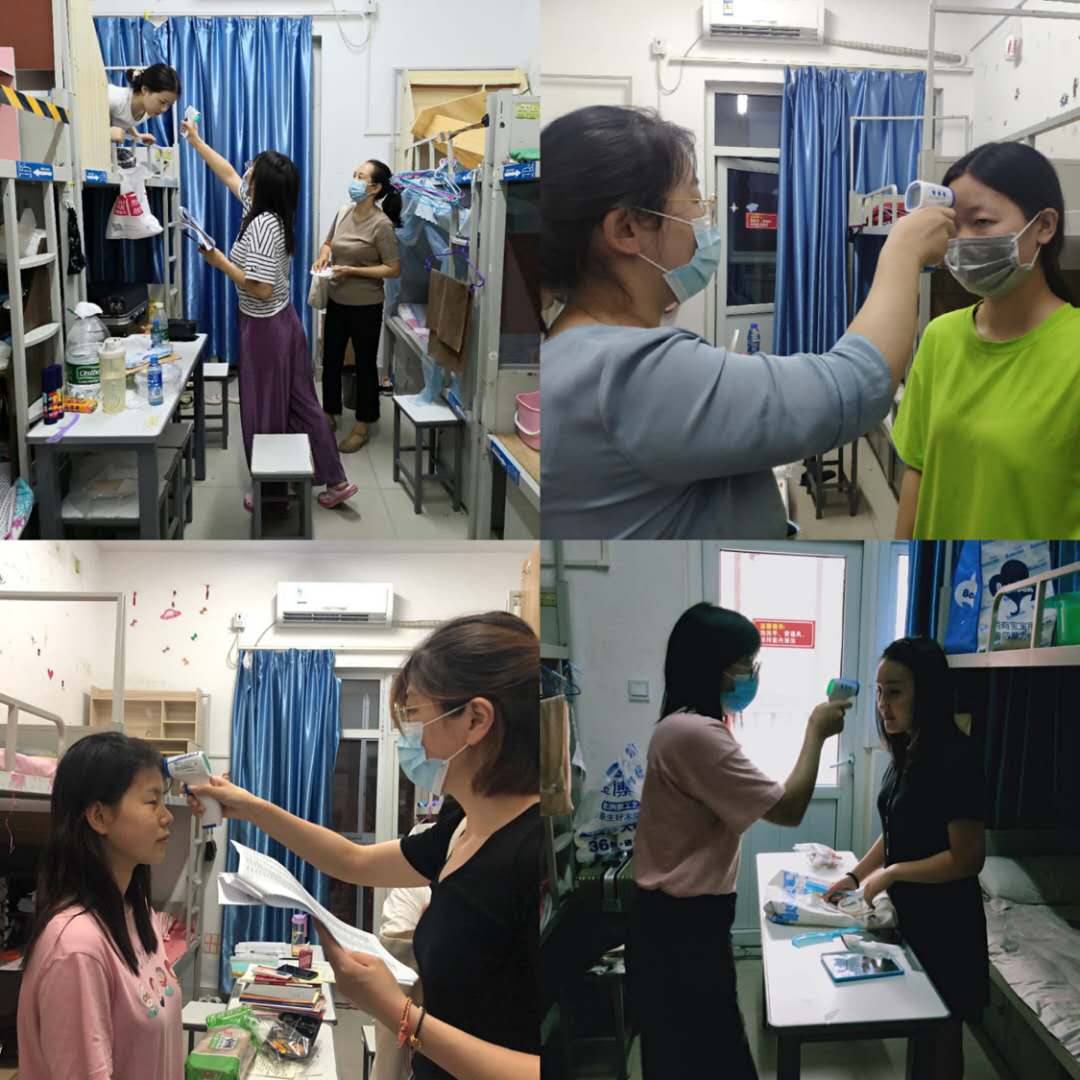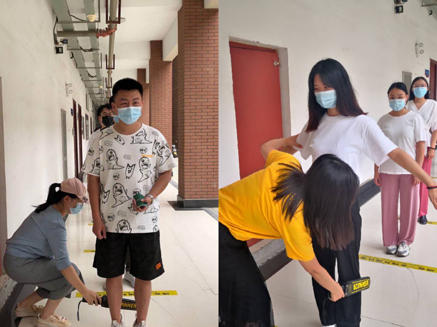 7月3日,按照郑州市招考中心要求,球王会学工办教师积极配合员工处进行“无声入场”模拟演练,教师们手持金属探测器逐一对每位考生进行全面细致的检查,确保考生明确考场禁带物品。7月9日,球王会分团委学工办7名送考教师及2名爱心送考党员教师于6点钟陆续到达金河校区为同学们送考,接送280名在金河校区隔离的考生往返于球王会官网英才校区、郑州市一中、郑州市八十二中等考点。保障所有考生安全、顺利参加专升本考试,为考生加油鼓劲,疏解紧张情绪。7月10日中午,学工办老师及部分员工党员依旧忙碌在金河校区员工宿舍,帮助毕业生们整理行李,收集宿舍钥匙,办理退宿手续。除此之外,2020届专升本考生在校隔离期间,公司领导带领学工办教师坚持每天按时在金河校区员工宿舍检测员工体温并及时将检测结果上报。