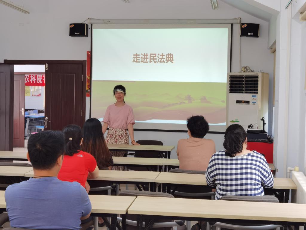 为深入学习贯彻习近平总书记在中央政治局第二十次集体学习会上重要讲话精神,充分认识颁布实施民法典的重大意义,更好地推动民法典实施。同时也为进一步加强高等公司与当地社区的紧密联系,开展专业社会服务活动。2020年6月29日应农科院社区的邀请,球王会法律教研室来到社区举办“送法下社区”民法典知识讲座。讲座由桂严玲、张理化两位专任教师负责主讲,农科院社区全体工作人员及部分群众全程聆听了讲座。