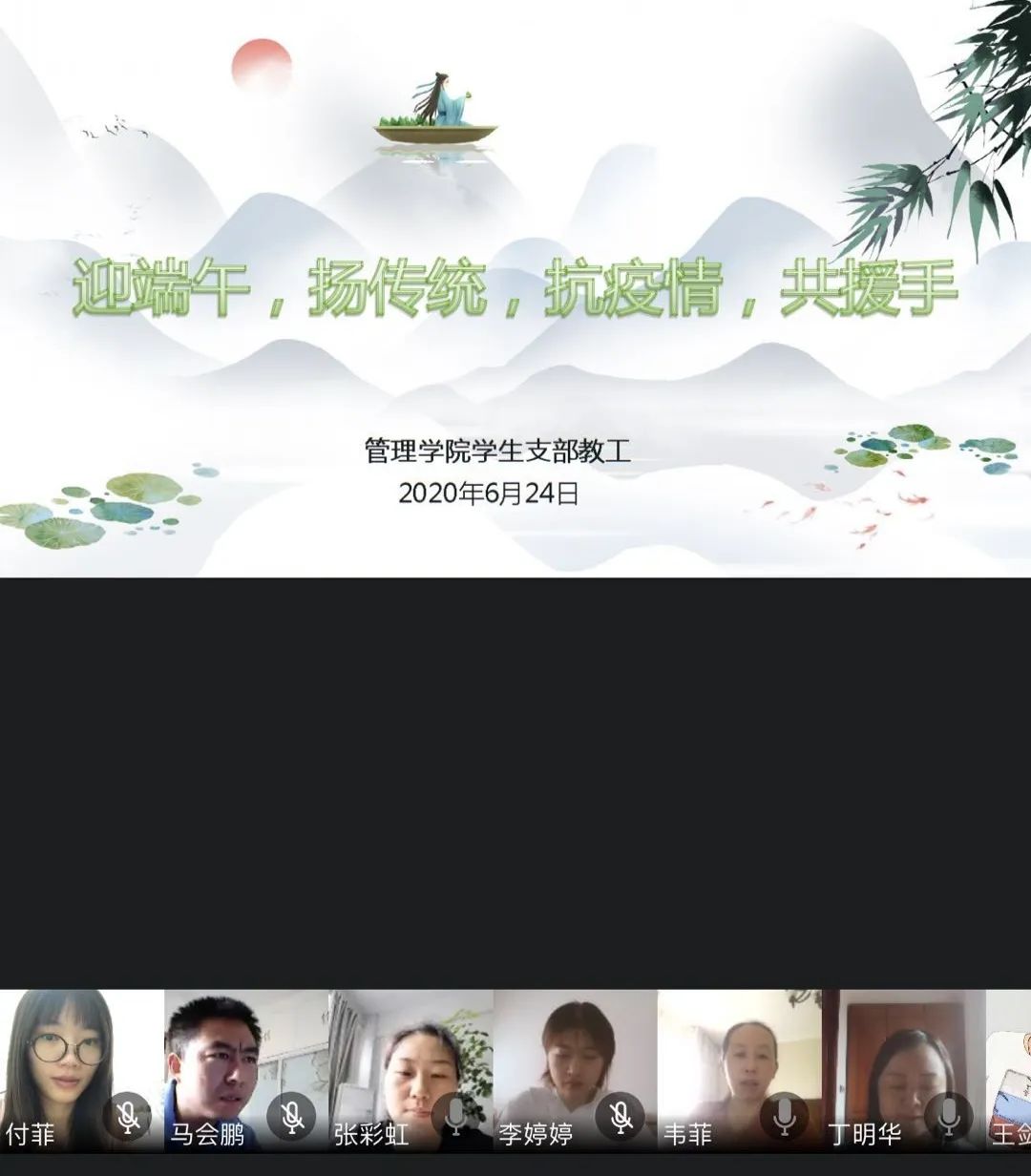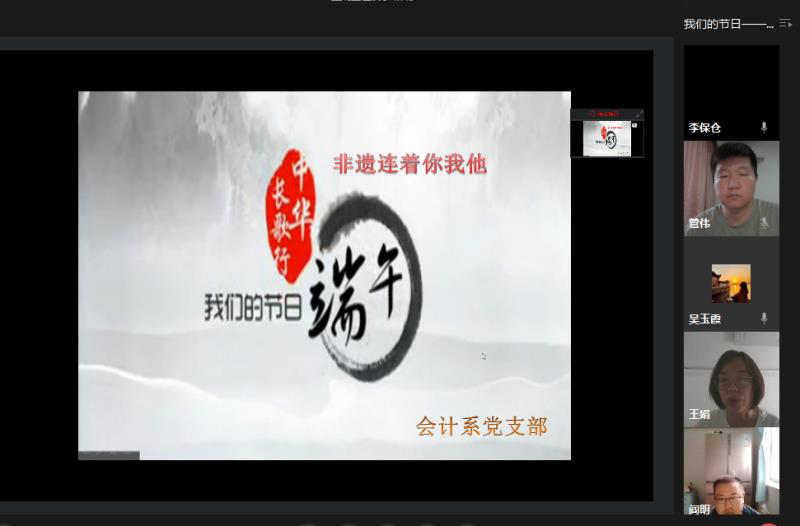 一是球王会各系、教研室分别策划各自活动方案,积极开展活动。旅游系老师通过线上诗歌朗诵的形式,普及端午节的节日习俗知识,感悟源远流长的中华文化,树立在创新中发展中华文化的意识,激发爱国热情与民族感情;会计系老师通过集体观看“中国文明网”端午特别节目,将自己了解的与端午有关的诗词进行了赏析与交流等形式过好端午传统节日,丰富大家的精神文化生活,努力提升老师们获得感和幸福感;法律教研室老师们线上展示端午节诗词PPT并深情朗诵,普及和深化关于端午节传统文化知识,使老师们不仅了解感悟了中国传统文化所独特的底蕴和美感,也进一步提升和坚定了老师们的文化自信;工商管理教研室老师通过摘抄端午民俗诗歌、屈原诗辞和历代经典爱国主义诗篇,让老师们深切感受传统文化魅力,增强爱国主义情感。