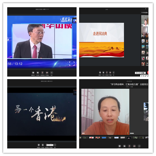 本次活动分三个环节进行。第一环节:集体学习2020年政府工作报告。政府报告充分评估了疫情对我国经济的冲击,报告着重强调了“稳就业,保民生”,并配套出台一系列惠民、便民政策。通过学习,我们深刻感受到了党和政府以人为本、执政为民,时时刻刻不忘为人民服务的根本宗旨;第二环节:由法律教研室张理化老师为大家讲授《中华人民共和国民法典》专题党课。《中华人民共和国民法典》被称为“社会生活百科全书”,公民从出生到死亡方方面面的权益在民法典中都有详细规定。张理化副教授从与日常生活中联系比较紧密的几个方面对民法典进行解读,使大家受益匪浅。民法典的制定体现了坚持以人民为中心的发展思想,依法维护人民权益;第三环节:集体观看专题片《另一个香港》,了解香港修例风波。专题片还原事实真相,揭露“港独”分子和反华势力以“反修例”为由,将香港推向危险边缘的实际用心。一件件暴力事件,严重破坏香港繁荣稳定,严重挑战“一国两制”原则底线。关于建立健全香港特别行政区维护国家安全的法律制度和执行机制的决定,有利于保障香港民众的生活和安全,使香港恢复繁荣稳定。