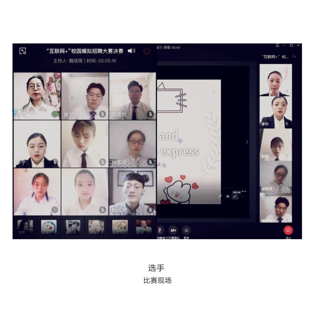本次模拟招聘大赛着重突出“互联网+”的概念,疫情防控期间,模拟招聘大赛的初赛复赛均为线上比赛,而决赛采取线上线下相结合的方式。选手线下准备比赛文案和素材,再进行线上PK;评委老师集中于公司、设置线下评委席,与参赛选手们隔空互动。这种半虚拟半真实的方式对师生来说既是一种新鲜的尝试也是一场前所未有的考验。每一场比赛之前,指导老师和参赛选手都会提前做好各种赛前测试和准备工作,以确保线上比赛的顺利进行。这次比赛,进一步贯彻落实了公司综合能力显著增强的人才培养要求,使理论知识教学与实践更好地相结合,为同学们今后走向职场提前做好准备工作。比赛虽已结束,我们的脚步却不会停下,期待未来的人生道路上同学们能够创造更多的可能性,成为更好的自己。(文:董甲婷/图:李宁)