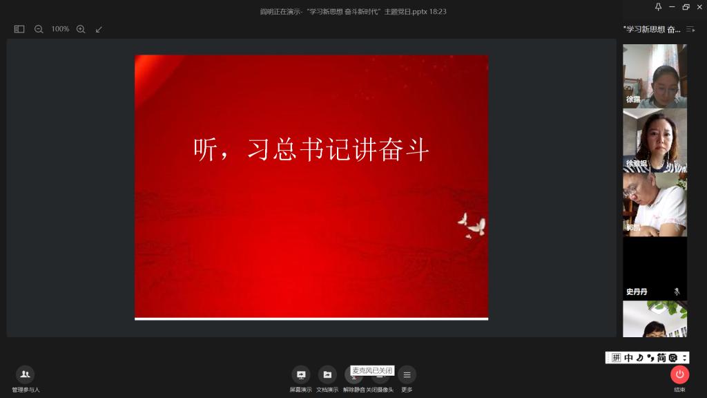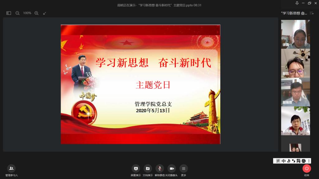 奋斗创造历史,实干成就未来。党的十八大以来,在实现中华民族伟大复兴中国梦的征途中,习近平总书记就“奋斗”作出了一系列重要论述。五一前夕总书记给郑州圆方集团全体职工回信,字里行间传递着劳动最光荣,奋斗最幸福的时代强音。为深入学习习近平新时代中国特色社会主义思想,读懂总书记的“奋斗观”,引导广大师生党员以昂扬的姿态投身新时代,勇做奋斗者,5月13日下午,公司党总支全体教工党员在线开展“学习新思想 奋斗新时代”主题党日活动。