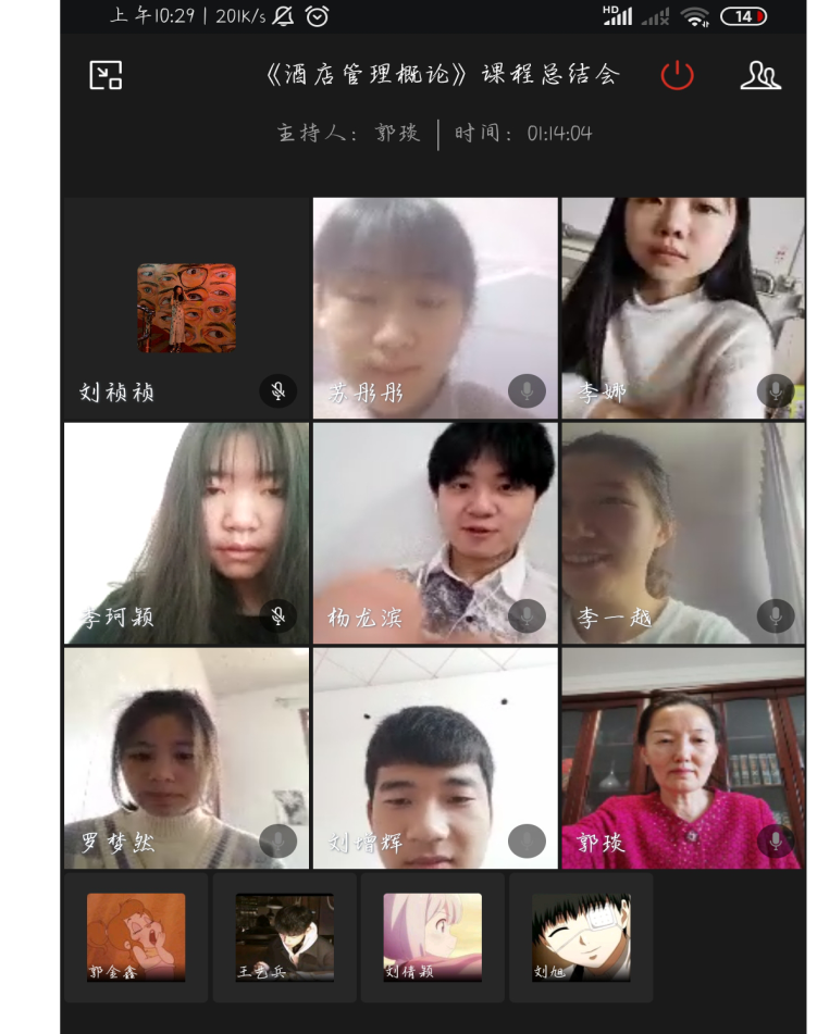 郭琰经理对于大部分同学在学习过程中表现出来积极、认真的学习态度做出了肯定,表明同学们有着对知识的求知欲,有着对专业的追求和信心。同时表扬了干部同学在学习中能够发挥模范带头作用,引领同学们积极向上。表现出了班级良好的学习风气和学习氛围。总体来看,同学们在《酒店管理概论》课程的线上学习和网络教学的学习效果良好。