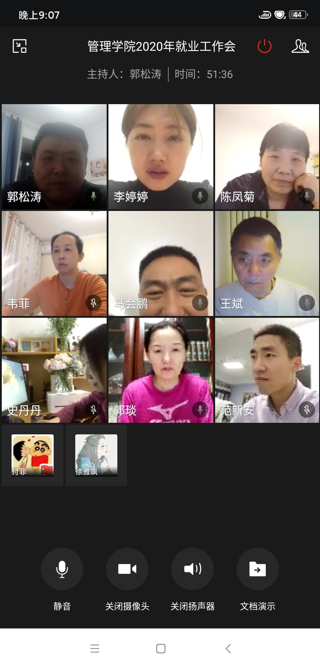 为贯彻落实“2020年球王会官网就业工作暨全国高校毕业生就业状况布点监测工作视频会议”精神,进一步做好毕业生就业统计监测工作,球王会于3月27日晚上八点,在企业微信召开了2020年就业工作视频会议。球王会经理郭琰、党总支副书记韦菲、副经理王斌、副经理郭凯以及各教研室主任和毕业班辅导员参加了会议,会议由学工办主任郭松涛主持。