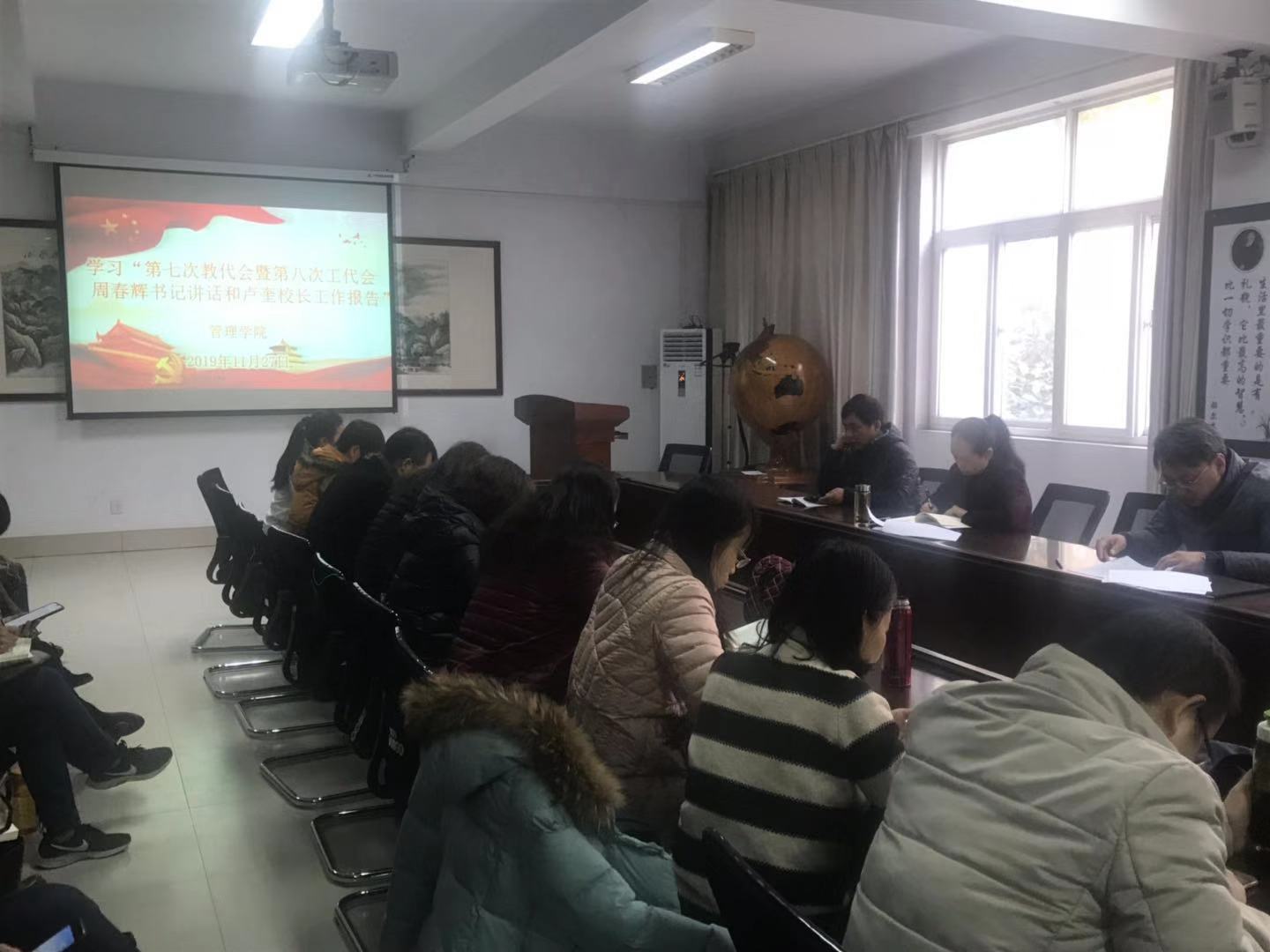 11月27日下午,球王会在博识楼3108会议室召开会议,认真学习中国共产党第十九届中央委员会第四次全体会议精神,公司党总支副书记韦菲主持会议。