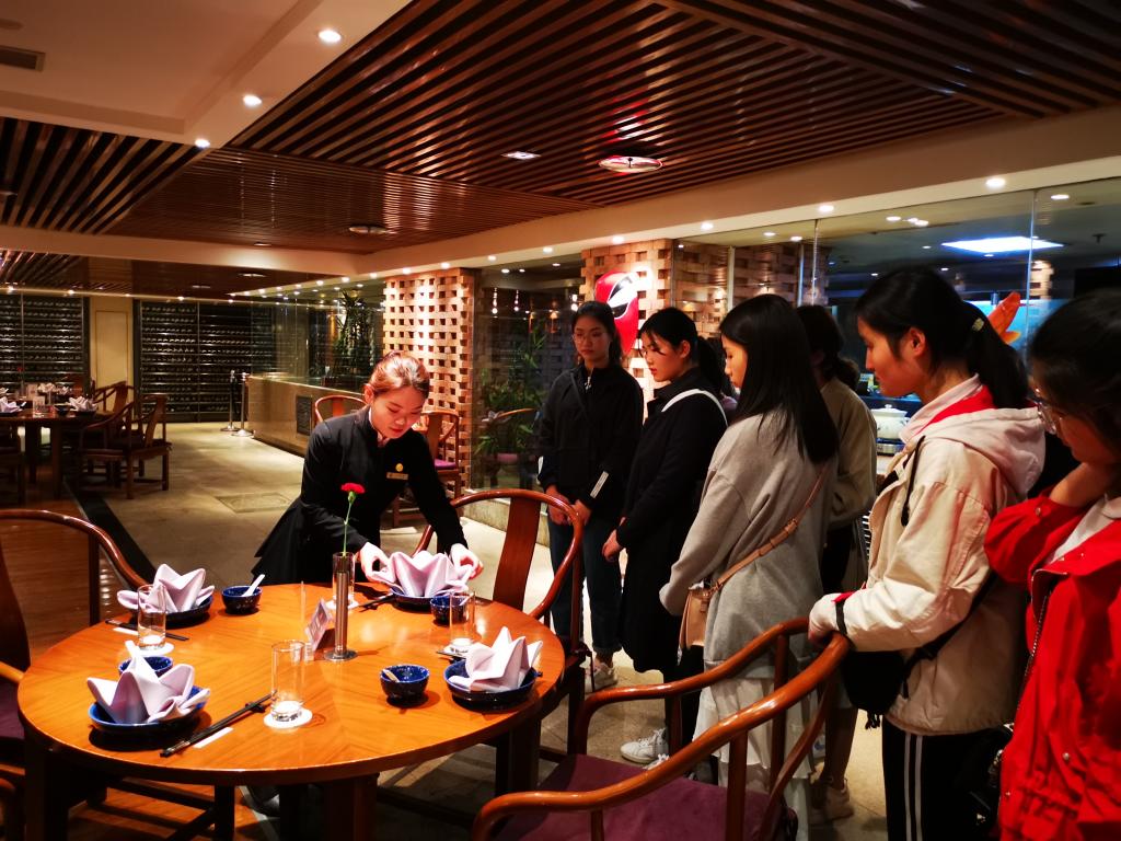 活动伊始,同学们便怀着向往的心情早早地列队等候在酒店门外,酒店人力资源部门的同事们热情地接待了公司师生,并带领同学们有序地参观了酒店的各个业务部门。参观期间,酒店负责人不忘详细地向员工讲解各部门工作内容和特点,还耐心地解答同学们的疑问和不解,帮助同学们直观地了解酒店的人员管理、资源管理和设备维护等专业知识。参观完毕,酒店培训总监陈卓女士邀请同学们进行了职业生涯的分享会,会上同学们认真聆听了陈卓总监对行业地见的,并认真思考了如何成为一位优秀的酒店人。