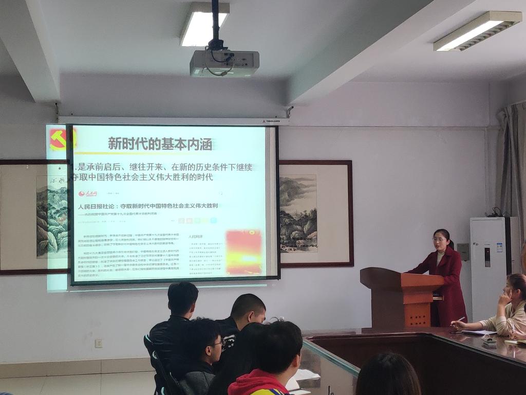 徐露老师在党课中强调,党的十九大是在全面建成小康社会的关键历史时期召开的一次重要会议。会议的最大亮点,是提出了习近平新时代中国特色社会主义思想。徐老师从“新时代的基本内涵”、“习近平新时代中国特色社会主义思想的丰富内涵”、“新发展理念”以及“习近平新时代中国特色社会主义思想的历史地位”四个方面进行了讲解和分析。