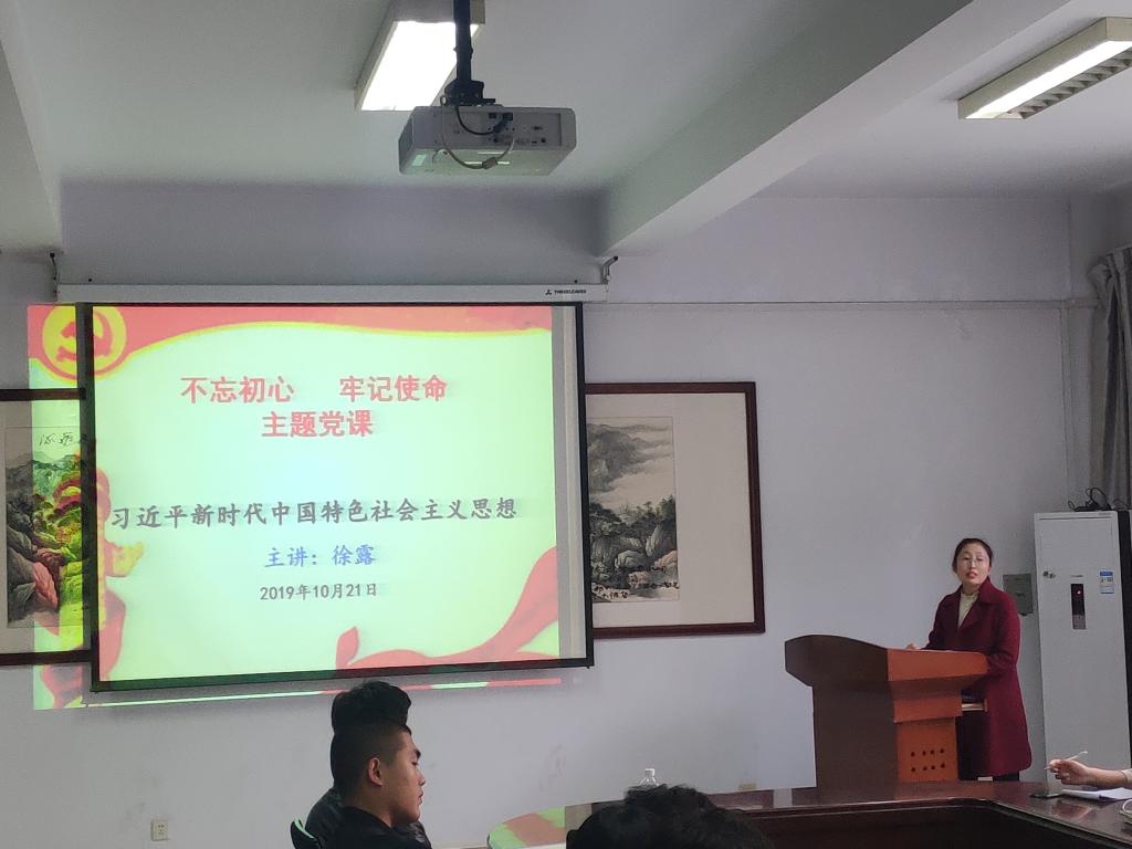 根据公司党委“不忘初心、牢记使命”主题教育实施方案的要求,结合公司对主题教育的部署安排,10月21日下午12:30,球王会教工党支部书记赵徐露老师在博识楼3108会议室,为2019年9月份入党积极分子上了一堂题为《习近平新时代中国特色社会主义思想》的主题党课。