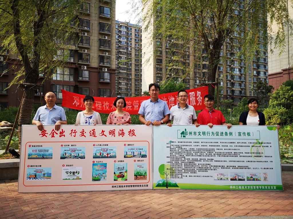 公司党总支精心制作《郑州市文明行为促进条例》和“安全出行交通文明海报”两幅展板,放在周转房家属院的门口,球王会法律教研室和公共管理教研室的老师发挥专业优势,向过往的师生讲解《条例》规定的内容,提醒广大师生遵守《条例》规定的内容,做到安全出行,文明交通,维护好校园环境。