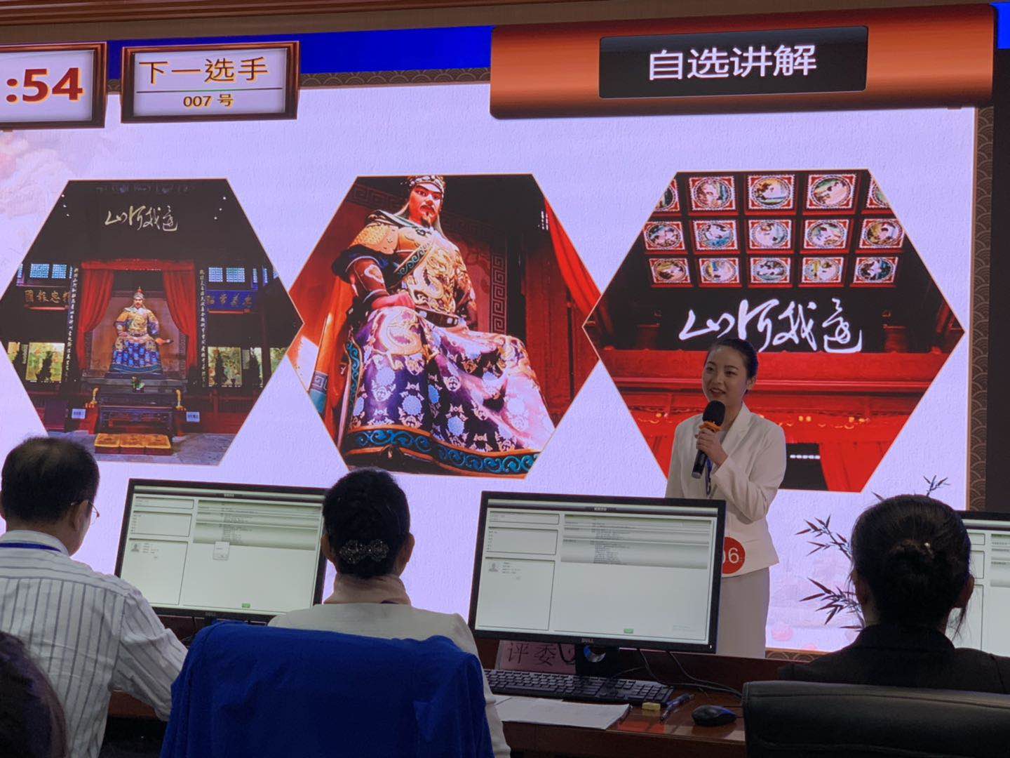 | 获得一等奖选手李琳在导游讲解比赛中 |