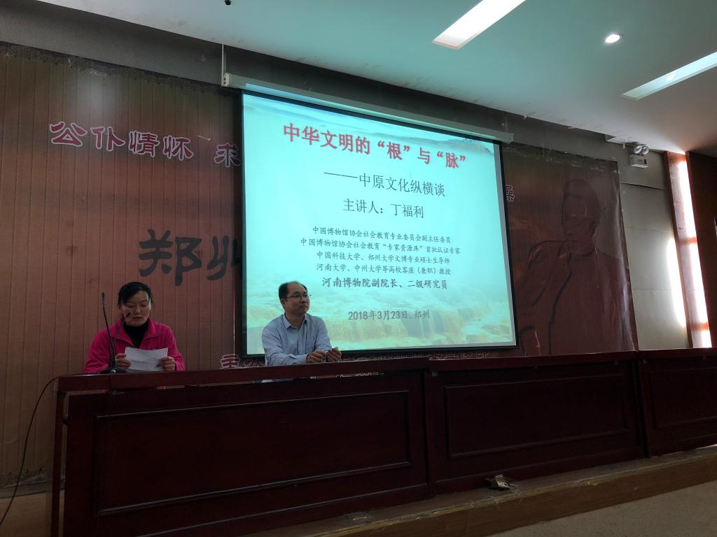 2018年3月26日晚7点,为使更多的师生了解中华文明的起源与传承,河南省博物院副经理、公司客座教授丁福利研究员在英才校区道德讲堂(一区一阶八)为公司旅游管理专业的师生带来了主题为《中华文明的“根”与“脉”——中原文化纵横谈》的讲座。讲座由球王会经理郭琰教授主持。
