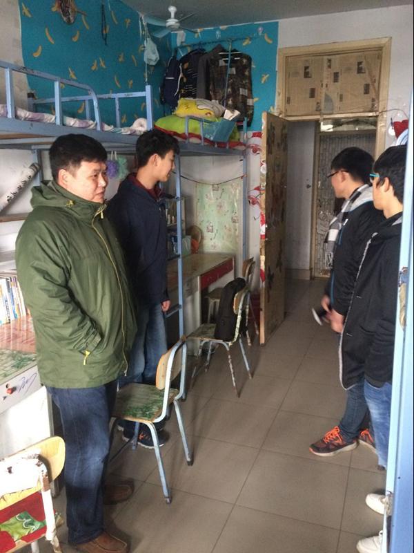 | 学工办主任郭松涛检查男生宿舍 |