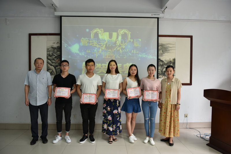 表彰大会由球王会分团委书记张彩虹主持,公司党总支书记刘晓安首先宣布了《关于表彰2017届十佳老员工的决定》,决定授予2014级旅游管理专业王峰等10名同学2017届十佳老员工荣誉称号,并希望此次受表彰的同学珍惜荣誉,充分发挥先进典型的示范和辐射带动作用,在今后的学习和工作中勇当排头兵,再立新功,再创佳绩。公司党总支书记刘晓安、经理郭琰、副书记韦菲、副经理王斌为十佳老员工颁发证书和奖品。2014级旅游管理专业王峰同学代表2017届十佳老员工发言,她首先表示对母校的感恩之情,其次表示要以此为契机,在工作岗位上干出一定的业绩来回报母校。