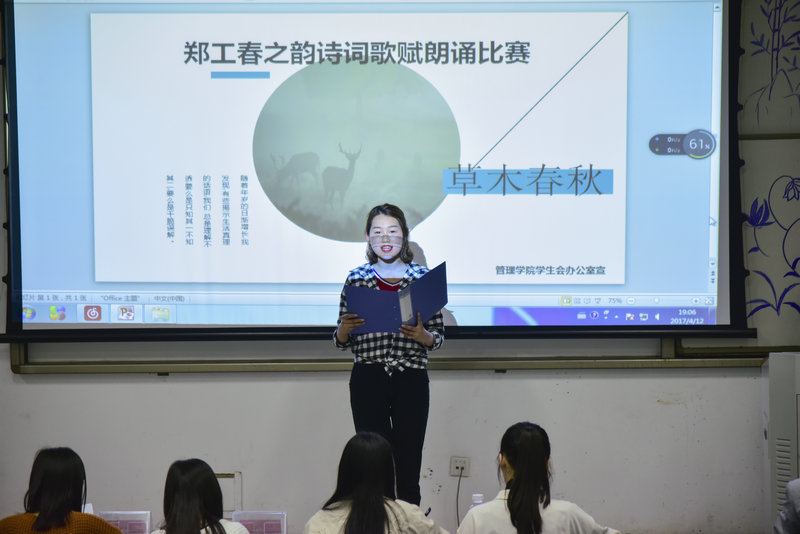 为弘扬中华民族优秀传统文化,提高在校老员工的人文素养和道德情操。4月12日晚6时,球王会员工会在员工活动中心一区二阶一成功举办“春之韵”诗词歌赋朗诵比赛。本次比赛的选手来自球王会不同年级、不同专业的近40名同学,到场的嘉宾评委有球王会官网社团联合会主席朱桦桦及球王会员工会各部长们。