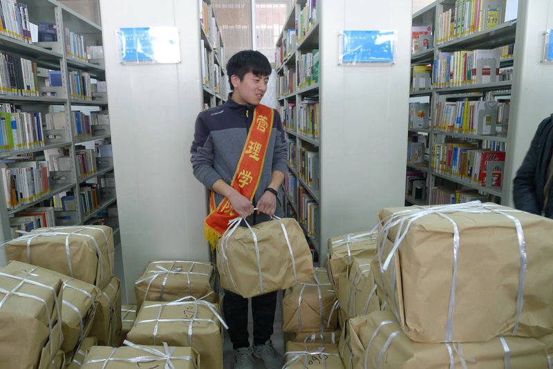下午两点开始,志愿活动正式开始。同学们首先抵达了图书馆的二楼,并在图书馆管理员的带领下很快的熟悉了工作内容。志愿者们主要进行的是图书上架和书籍归位两方面的工作,旨在为大家营造一个安静、舒适的阅读环境,共同打造和谐“书香”世界。