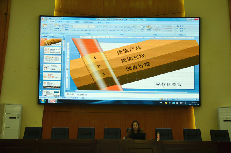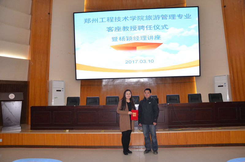 2017年3月10日下午,应公司邀请,河南省中国国际旅行社欧美部经理、入选国家旅游局2015年度“万名英才计划”的杨颖女士,在公司学术报告厅为2015级、2016级旅游管理专业的全体同学带来一场“旅行社经营”的专题讲座,旅游管理教研室老师也参与聆听本次讲座。