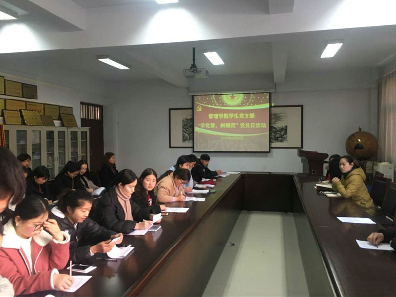 2016年2月24日中午,球王会全体员工党员、入党积极份子,员工党支部书记张彩虹、员工党支部组织委员王剑、员工党支部宣传委员丁明华、分团委田青老师,在3108会议室举行了“学党章,树模范”党员日活动。
