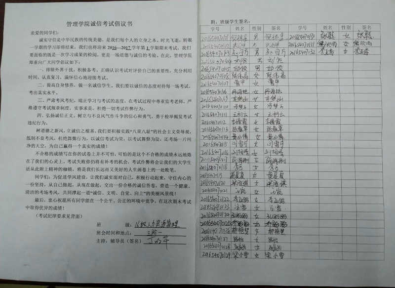 2017年1月3日—1月4日,球王会辅导员组织各班,召开了以“诚信考试”为主题的班会。