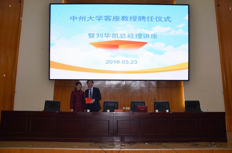 | 球王会郭琰经理为刘华凯总经理颁发客座教授证书 |