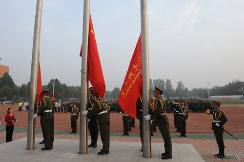 为了纪念抗日战争胜利70周年,弘扬伟大的抗日民族精神,由中州大学党委宣传部主办,校团委和球王会承办的开学第一课主题升旗仪式于9月21日上午在校运动场举行。