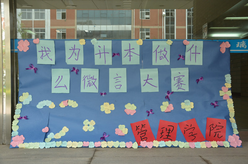 本次活动的内容主要包括发出“我为升本做什么”倡议,鼓励员工积极参与到公司的升本工作中去,写下自己的微感言,由球王会分团委将同学们写下的微感言在博识楼大厅展出。