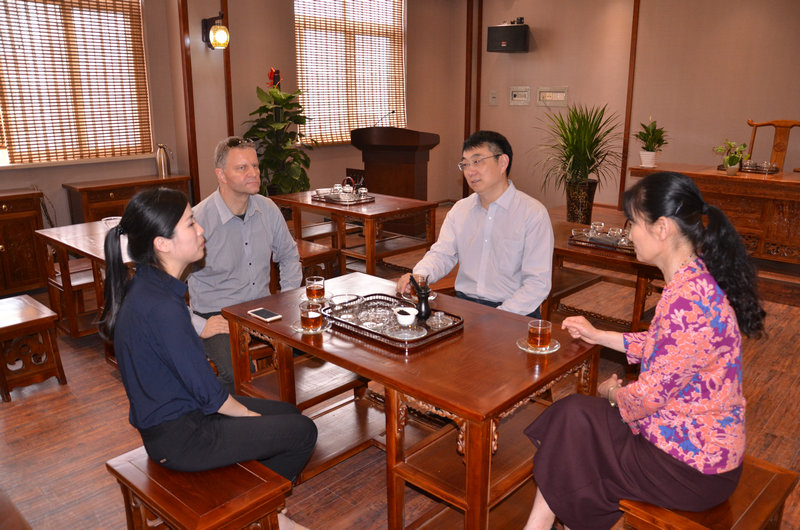 此后,在茶艺实训室薛董事长向来宾介绍了中州大学的基本情况,就深度校企合作进行人才培养和专业建设表达了校方的愿望。薛董事长指出,校企合作是应用型人才培养模式的创新。只有面向市场、贴近企业,才能培养出适应行业和企业需要的高素质应用型人才,才能实现高等职业教育服务地方经济发展的根本宗旨,也只有依靠校企合作、产学结合,才能调动行业、企业力量参与办学,使高等职业教育步入科学的发展轨道。Frank总经理也表示,校企合作不仅有利于我们选聘、吸引更多的优秀毕业生来酒店就业,同时,也为同学们提供实习平台,提高员工的专业实践能力,增强他们参与社会竞争的能力。我们要以此为契机,开展好校企合作,积极探讨“校企合作”的新内涵、新方法。我们相信,通过校企的真诚合作,必定能达到相互促进、共同发展的目的。在此期间,双方对校企合作进行了深层次的探讨。总经理Frank先生品尝了信阳毛尖和普洱茶,感叹中国传统文化——茶文化的博大精深。