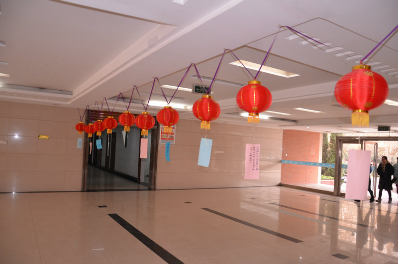 “劝君更尽一杯酒(打一地名)”、“青梅煮酒论英雄(打一歌曲名)”、“莫为儿孙做牛马(打一成语)”、“读书好,耕田好,学好便好(请对下联)……在“猜灯谜”活动现场,20只红灯笼上挂着经典灯谜、对联和常识问答,让来来自各个公司的老师和同学们围着这些灯笼转啊转,热热闹闹的你猜我想,脸上还洋溢着满满的幸福和被红灯笼映衬出的喜悦。
