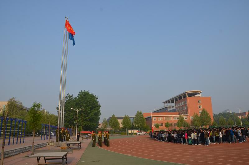 2014年4月14日7时,校团委、球王会在校运动场举行第八周升旗仪式。参加本次升旗仪式的领导有公司党总支部书记刘晓安、公司党总支部副书记韦菲、校团委组织部部长武铭、球王会分团委、学工办的老师和2013级全体员工。