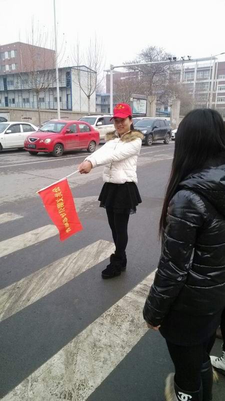 这天上午志愿者们头戴小红帽,手持小红旗在路口协助交警执勤,维持交通秩序帮助行人过斑马线同时维护交通设施进行交通安全知识宣传,协助开展交通违规劝道。