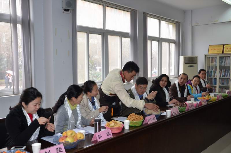 领导和老师品尝藏族新年传统食品