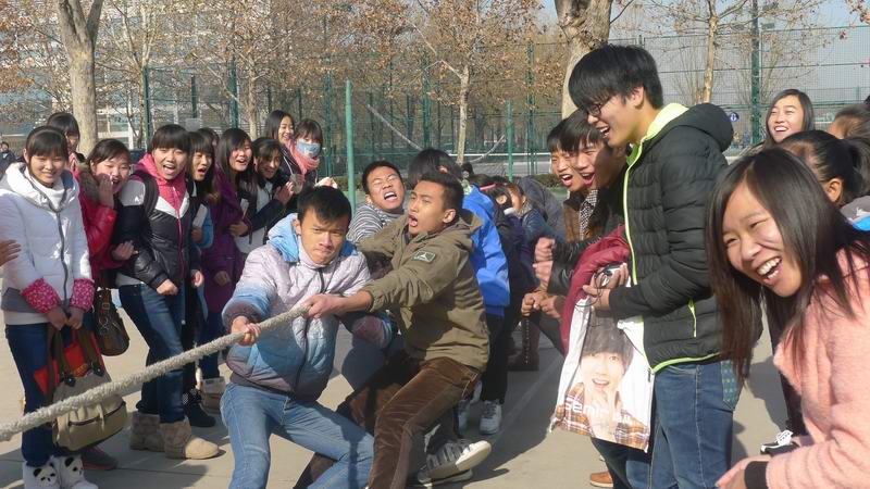 拔河比赛中,所有参赛的班级队员,拉拉队早早聚集在公司操场,摩拳擦掌,好不热闹。比赛在裁判的一声哨子声中拉响,随之一二三吆喝声,加油加油呐喊声,震耳欲聋,响彻操场的每一个角落。参赛队员的脸上渗出了汗珠,手上现出了红肿,双腿也在微微颤抖,可他们忘我投入,全然不知。拉拉队员个个紧握拳头,嗓子都沙哑了。不论场内还是场外,同学们好像融为了一体,心往一处想,劲往一处使,比赛的劲头越演越烈。失败的班级也并没有气馁,而是同样祝福获奖的班级,真正体现了“友谊第一,比赛第二”的赛场不精神。本次比赛同学们精神抖擞,团结一心,体现出顽强的意志和拼搏的精神,即赛出了水平,又赛出了风格。