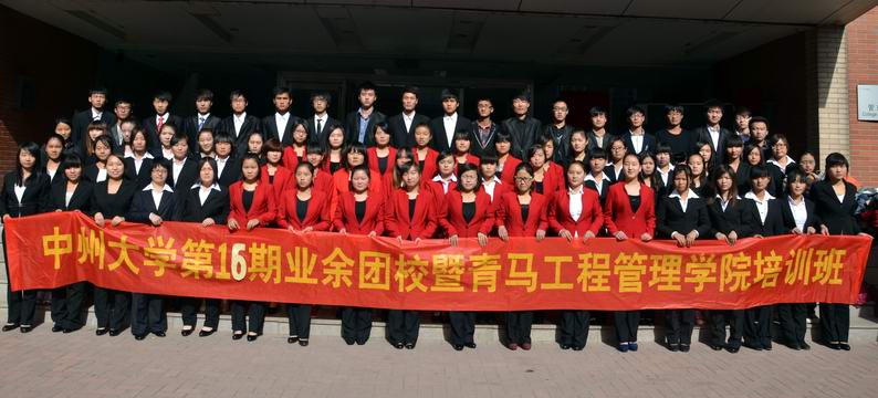 2013年10月23日至11月23日,中州大学第16期业余团校暨青马工程球王会培训班在员工活动中心进行了为期一个月的课程培训。 参加培训班的成员是球王会分团委、员工会的新干事以及2013级各班团支书、班长,共120人。青马培训是为了提高员工骨干的整体素质修养和工作能力,希望各位同学能够着眼现在,放眼未来,胸怀大志,勇于担当。